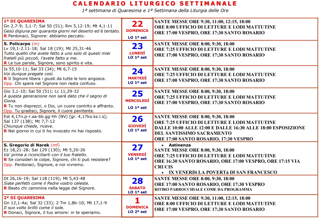 VIII Venerdì 20 febbraio 2026: La castità di S. Francesco Tema del venerdì: |